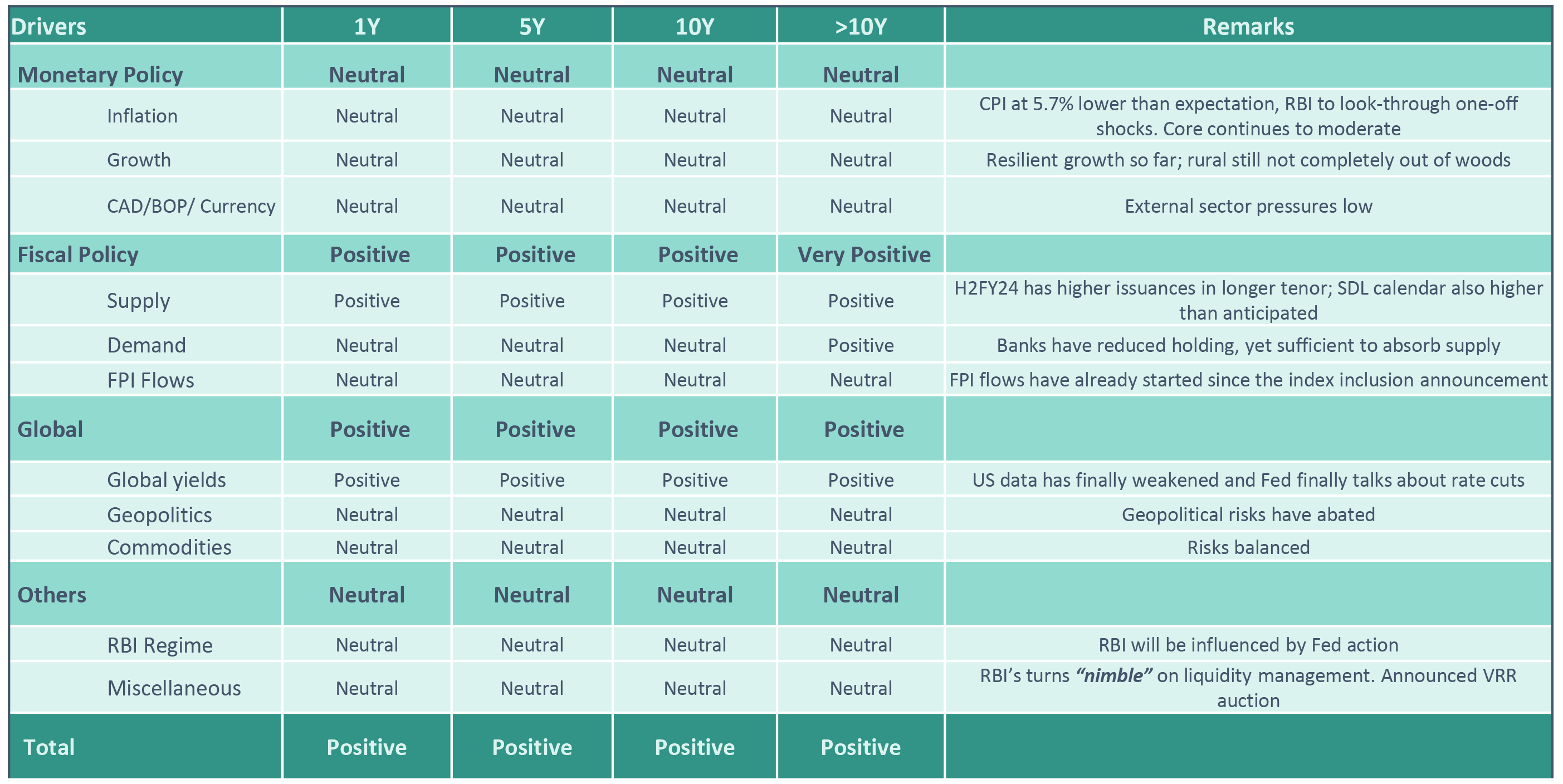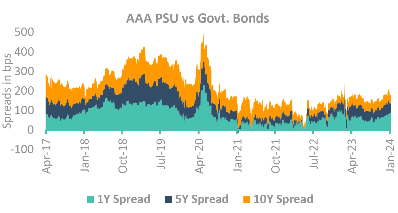 With surplus durable liquidity, stable domestic macros we expect rates to remain range bound, however continuous supply by banks will keep the rates from significantly slipping down. We will remain long in our funds to gain accrual at existing spreads.