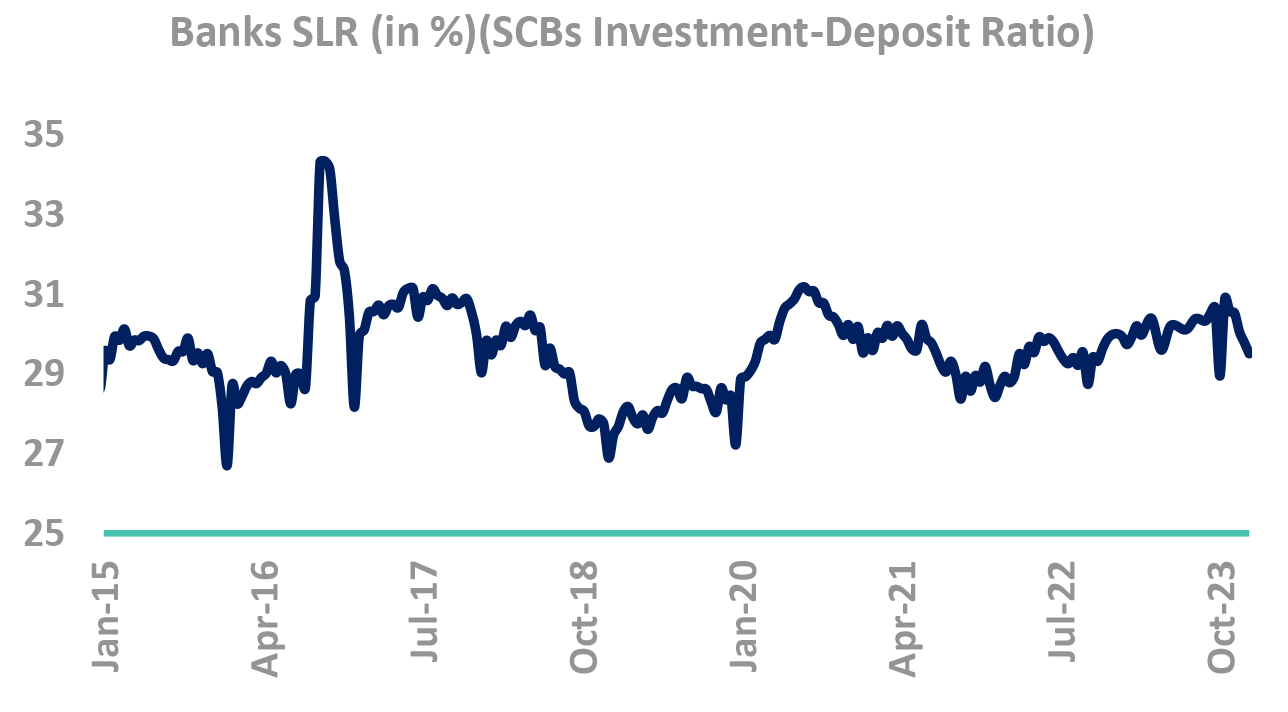 Estimated excess supply of ₹ 0.68 tn is not very significant. Our assumption for banks SLR ratio is at existing levels of 29.5%