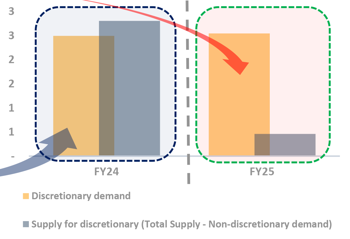 Increase in supply impacts the discretionary buying. Banks excess holding, passive buyers have been absorbing the supply