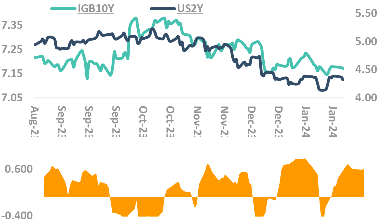 Domestic environment steady, US pricing of rate cut expectations to drive bond yields
