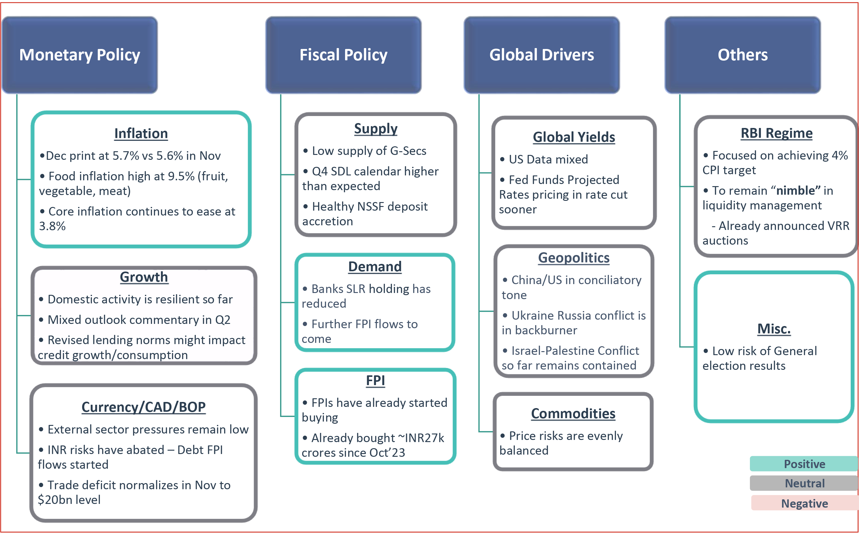 Source – Internal, CGA G-Sec: Government Securities; OMO: Open Market Operation; RBI: Reserve Bank of India; FPI: Foreign Portfolio Investment; NPS: National Pension System; MF: Mutual Fund; SDL: State Development Loans; SLR: Statutory Liquidity Ratio; PF: Provident Fund; EPFO: Employees’ Provident Fund Organisation; NSSF: National Small Savings Fund