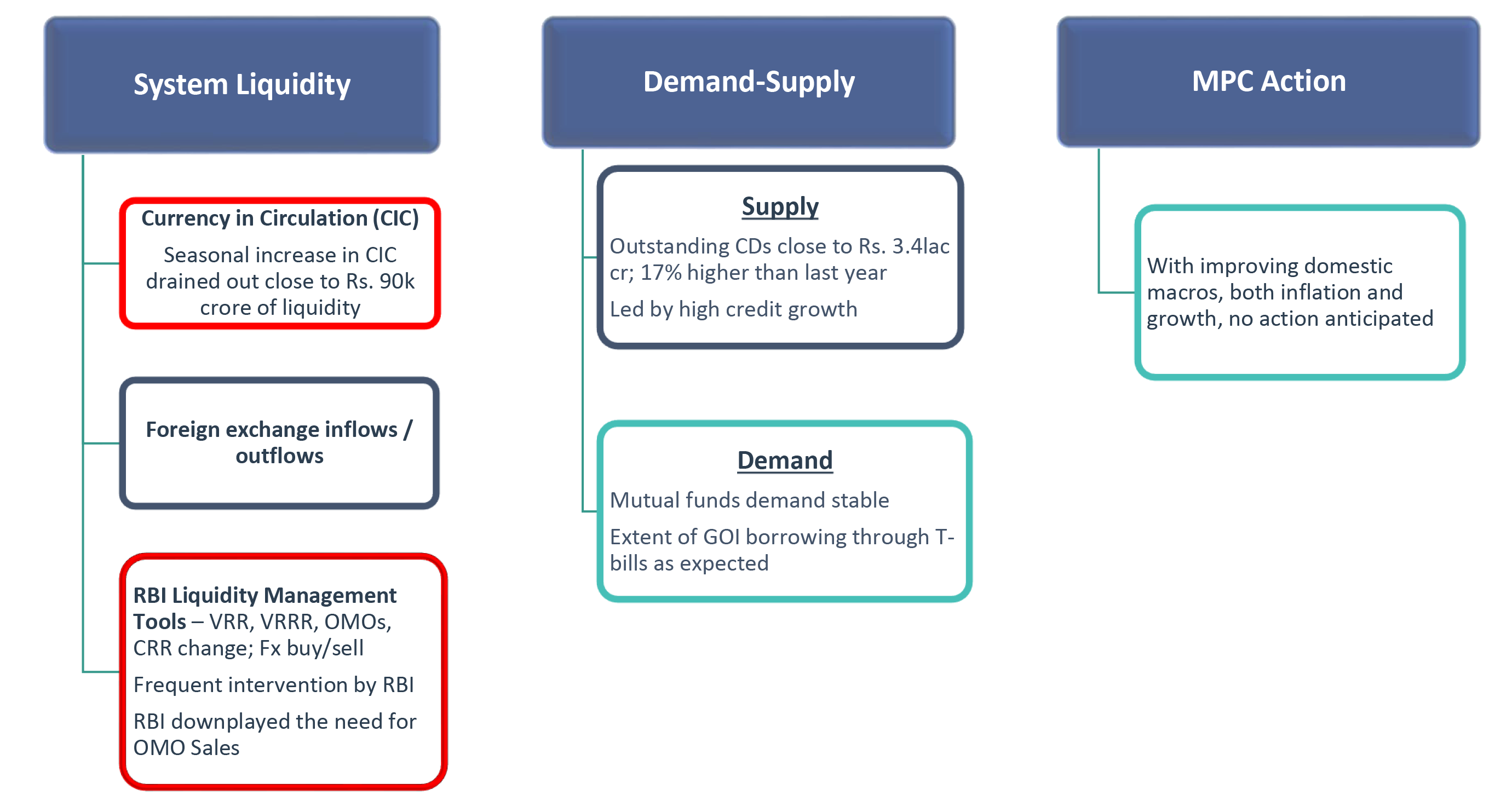 - Liquidity continues to remain tight despite VRR operation by RBI