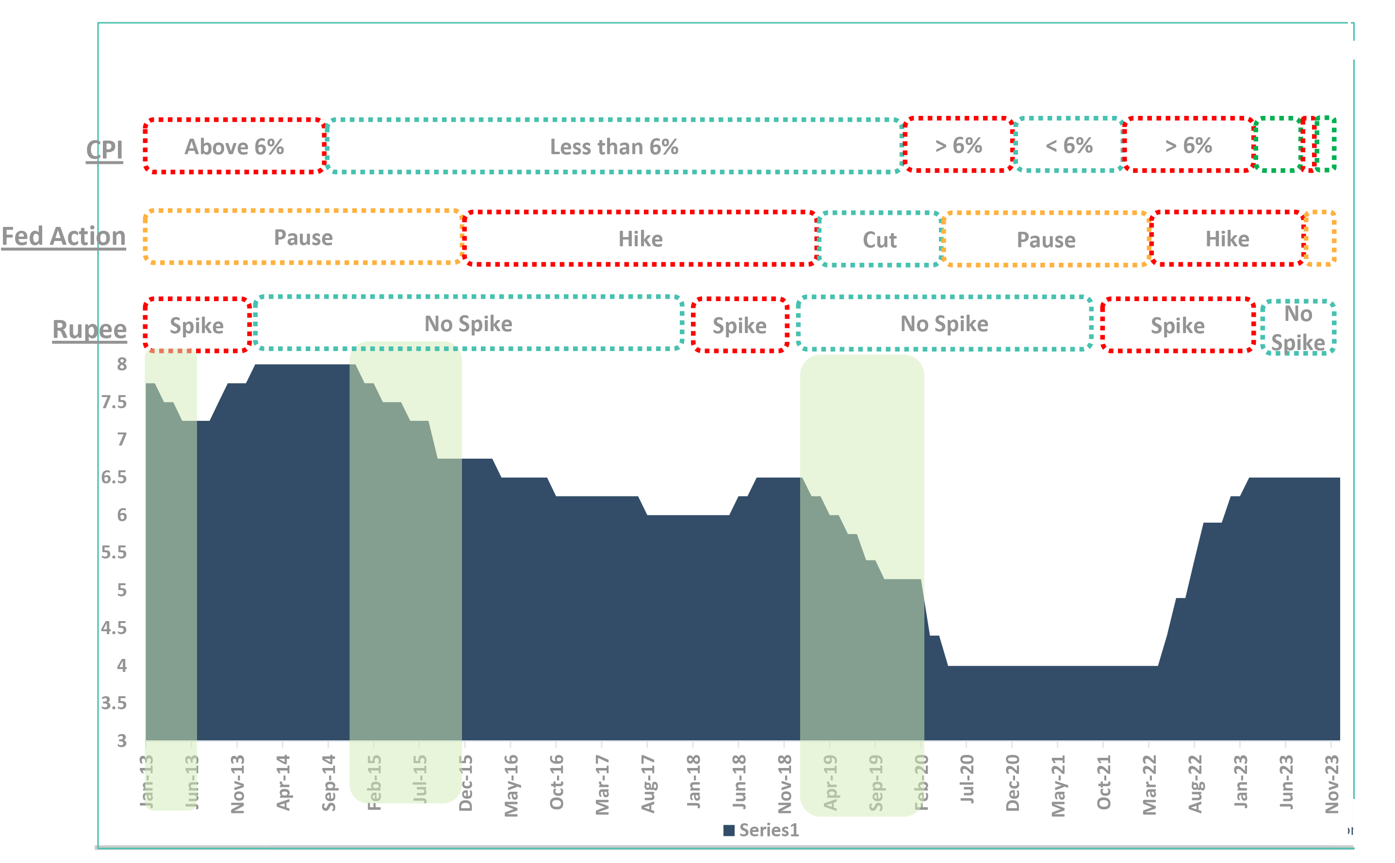 - CPI less than 6% (except in 2013 when RBI didn’t have 6% target)