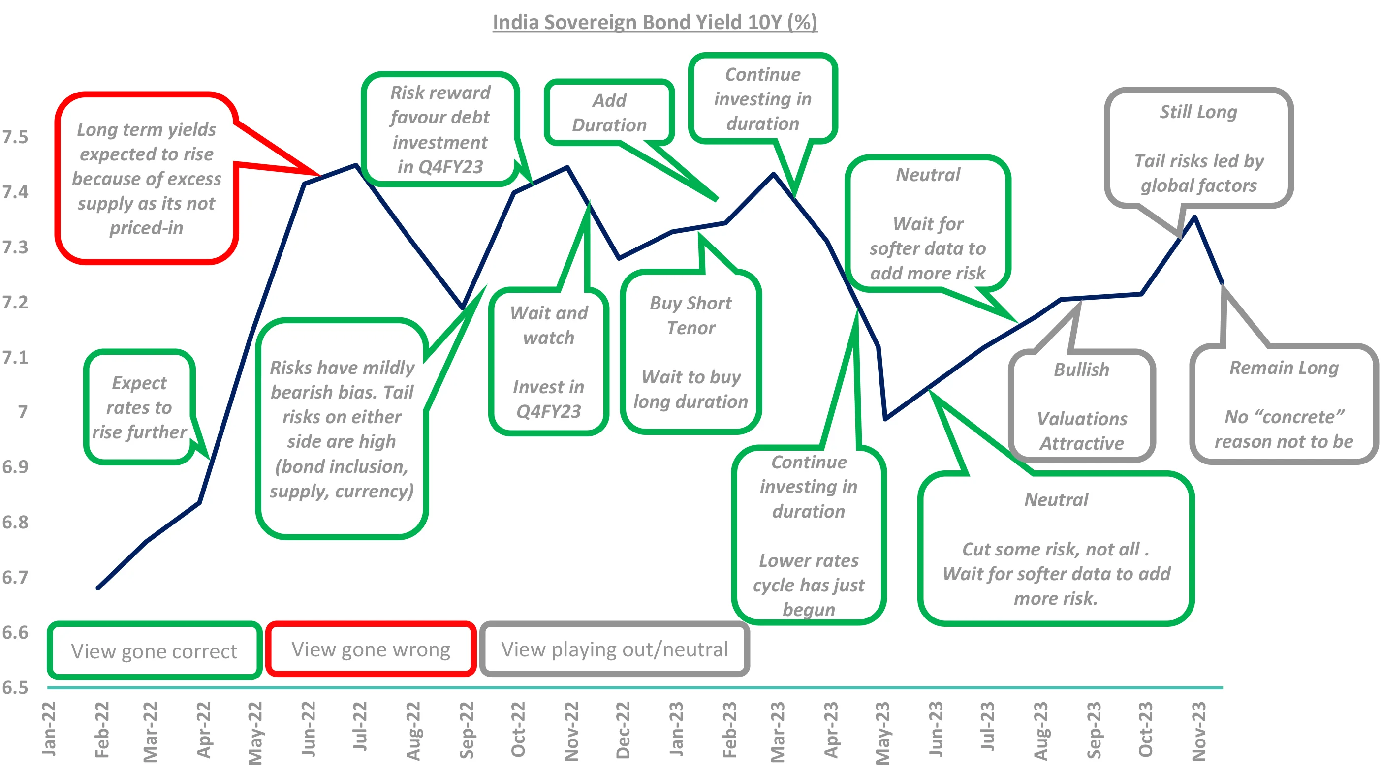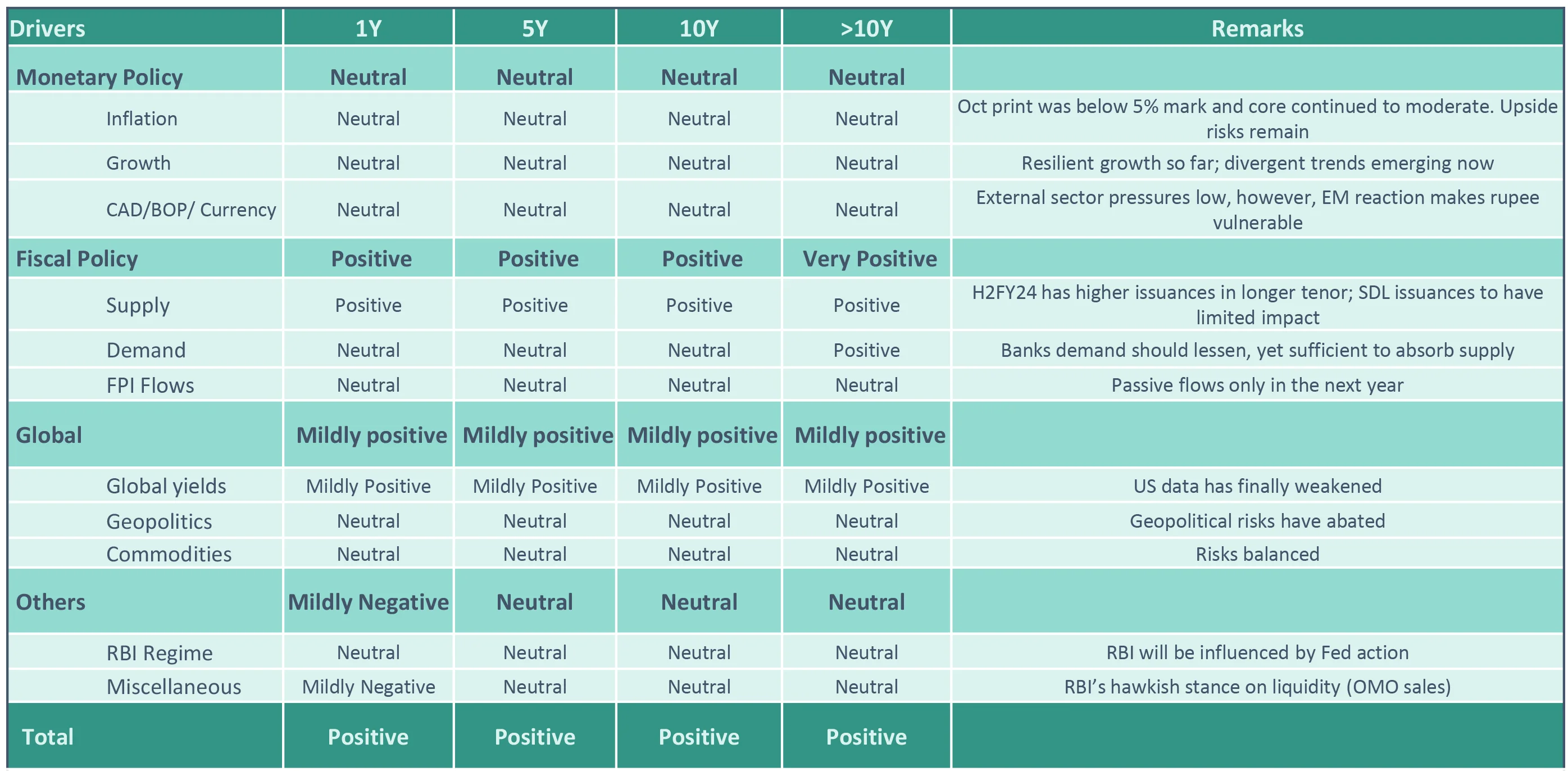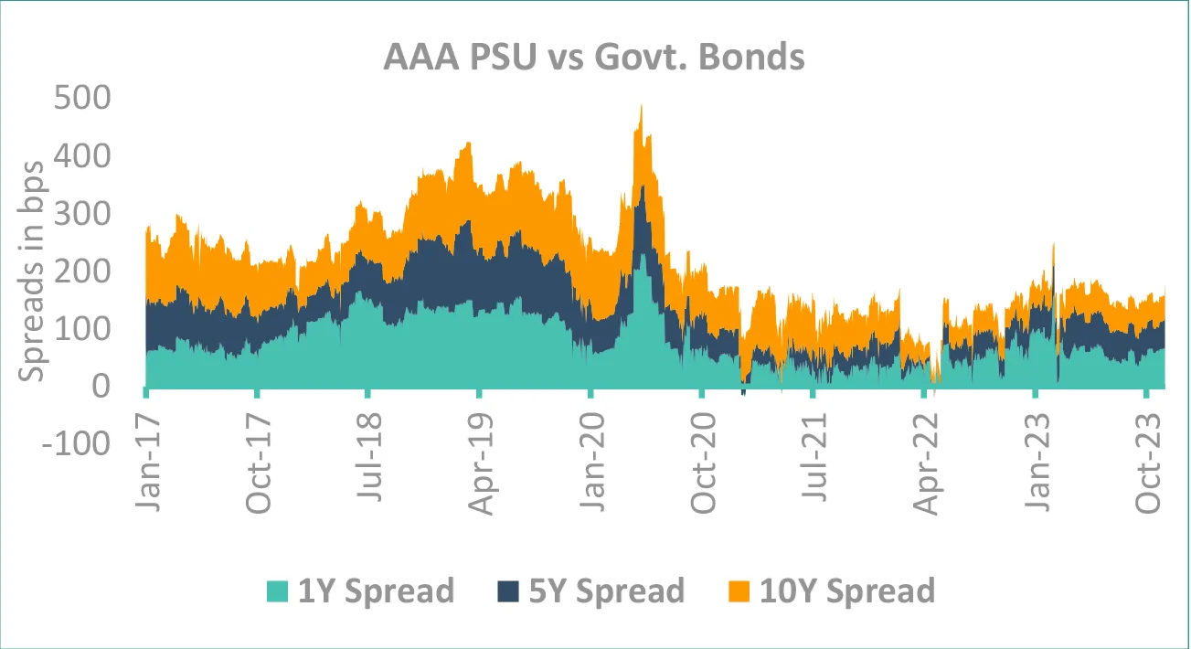 With surplus durable liquidity, stable domestic macros and well-matched demand-supply dynamics expect money market rates to remain range bound. We will remain long in our funds to gain accrual at existing spreads.