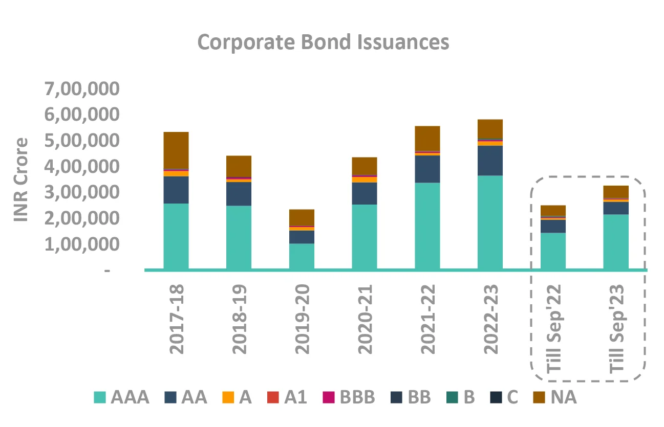 - H1FY24 issuance at ~1.3x of H1FY23 led by AAA rated segment