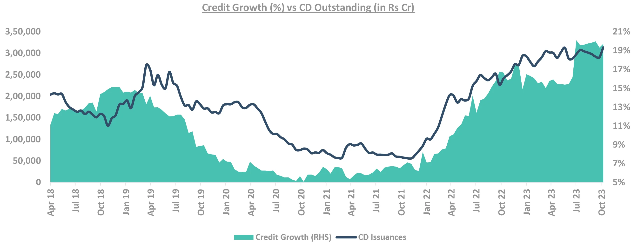 High credit growth has contributed to increase in Certificate of Deposits issuances over the last year