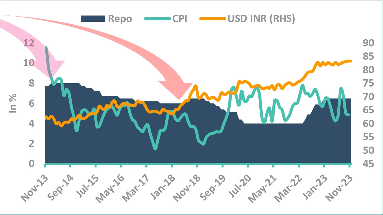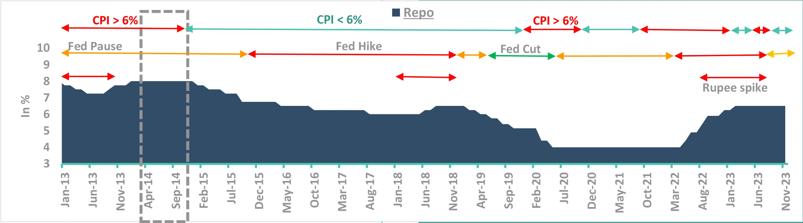 - Barring 2014 (refer to the dotted area), when RBI did not have 6% CPI target