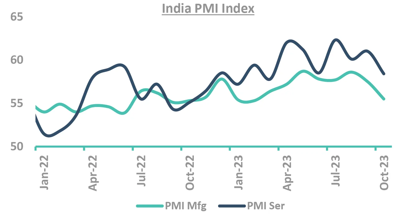 Source – Bloomberg, PIB, Internal GDP: Gross Domestic Product; PMI: Purchasing Managers’ Index; GST: Goods and Service Tax; IGB: India Government Bond; Mfg: Manufacturing; FMCG: Fast Moving Consumer Goods; PV: Passenger Vehicle