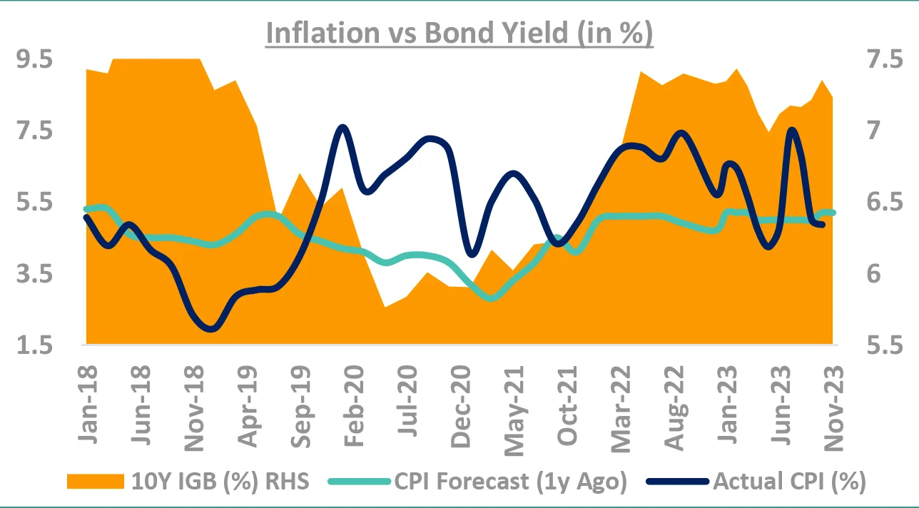 Source – Bloomberg, RBI, Internal CPI: Consumer Price Inflation; RBI: Reserve Bank of India; IGB: India Government Bond