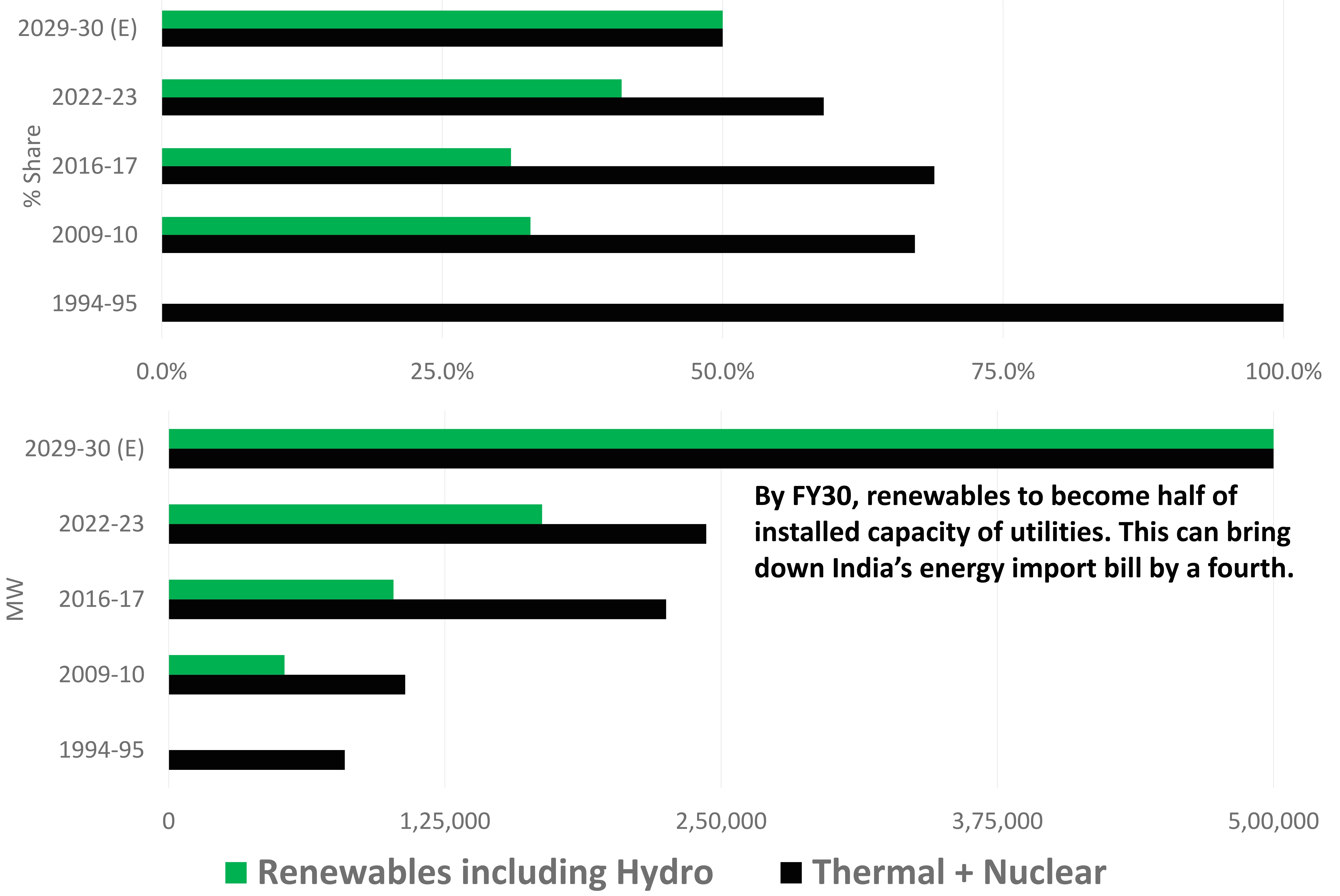 This means that Indian economy is still in an early growth phase and is far from overheating or tipping over. Consumption of energy is likely to rise ahead which is likely to be supported by a big push for renewables.