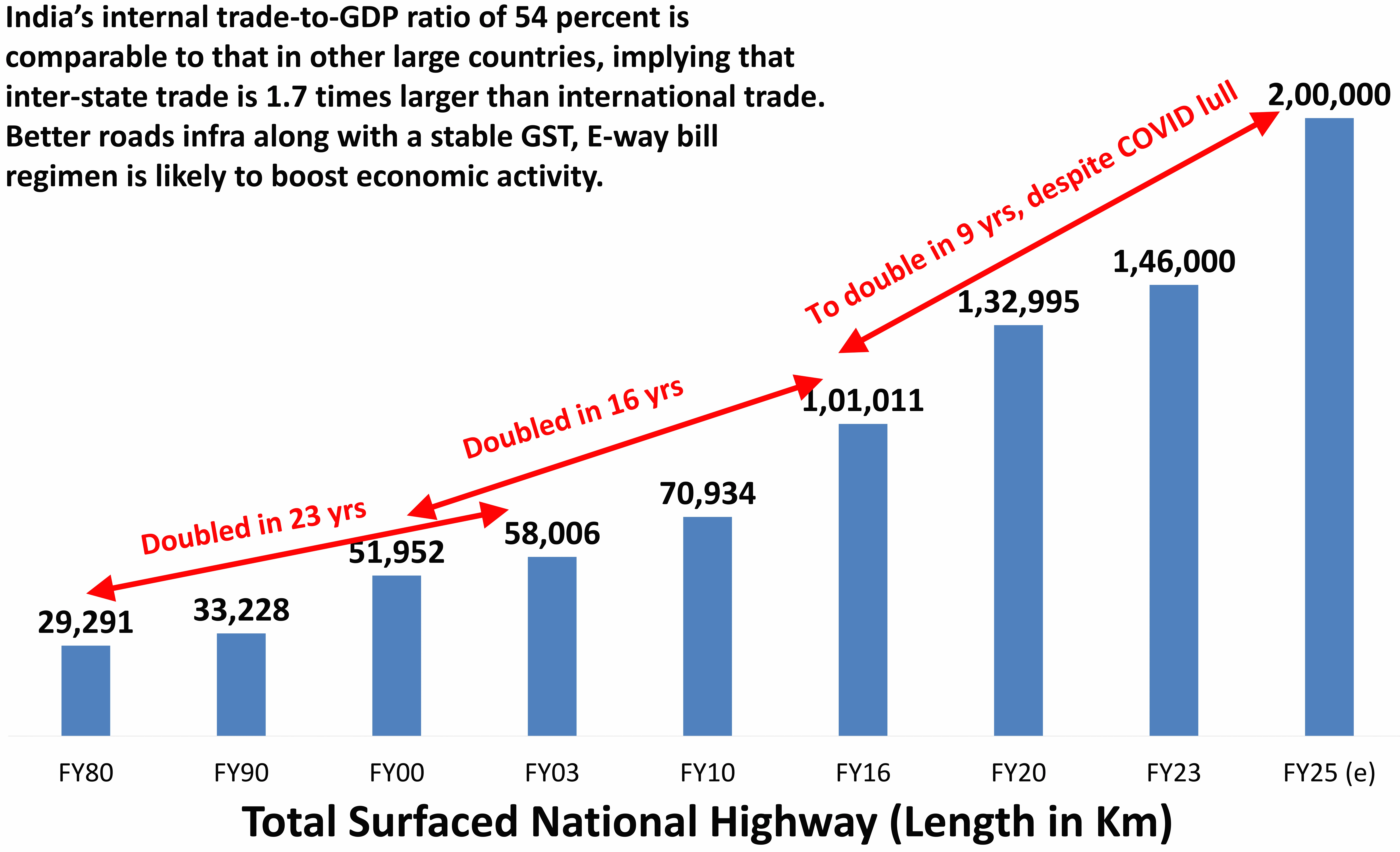 A large and robust network of road infrastructure can help India’s interstate trade and, hence, economic growth. Very little research has gone into the multiplicity of this infrastructure development and its impact on economic growth.