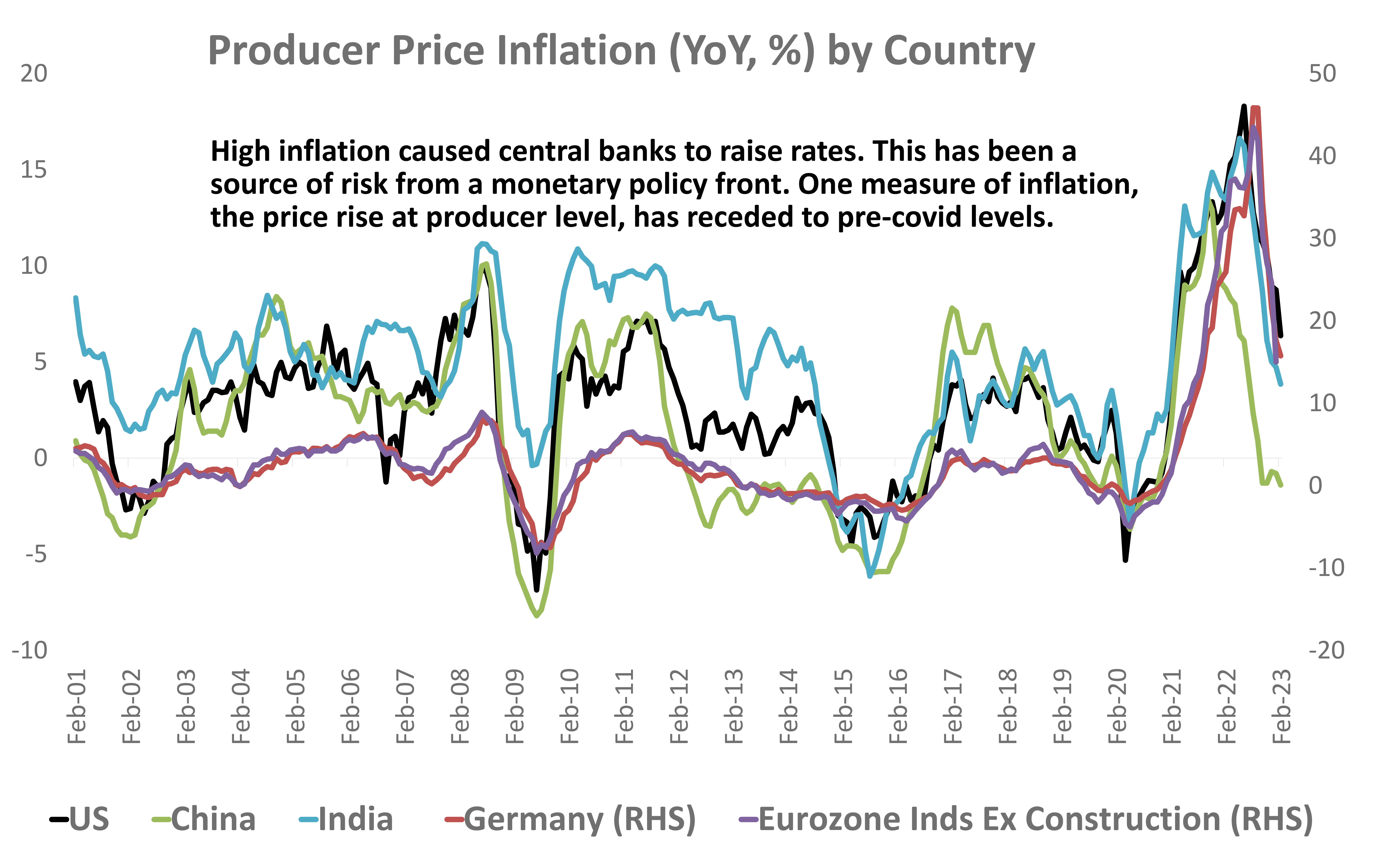 This is visible in a fall in rate of inflation at the producer level, the PPI or producer price index in most countries are now rising at a slower pace than in last two years.