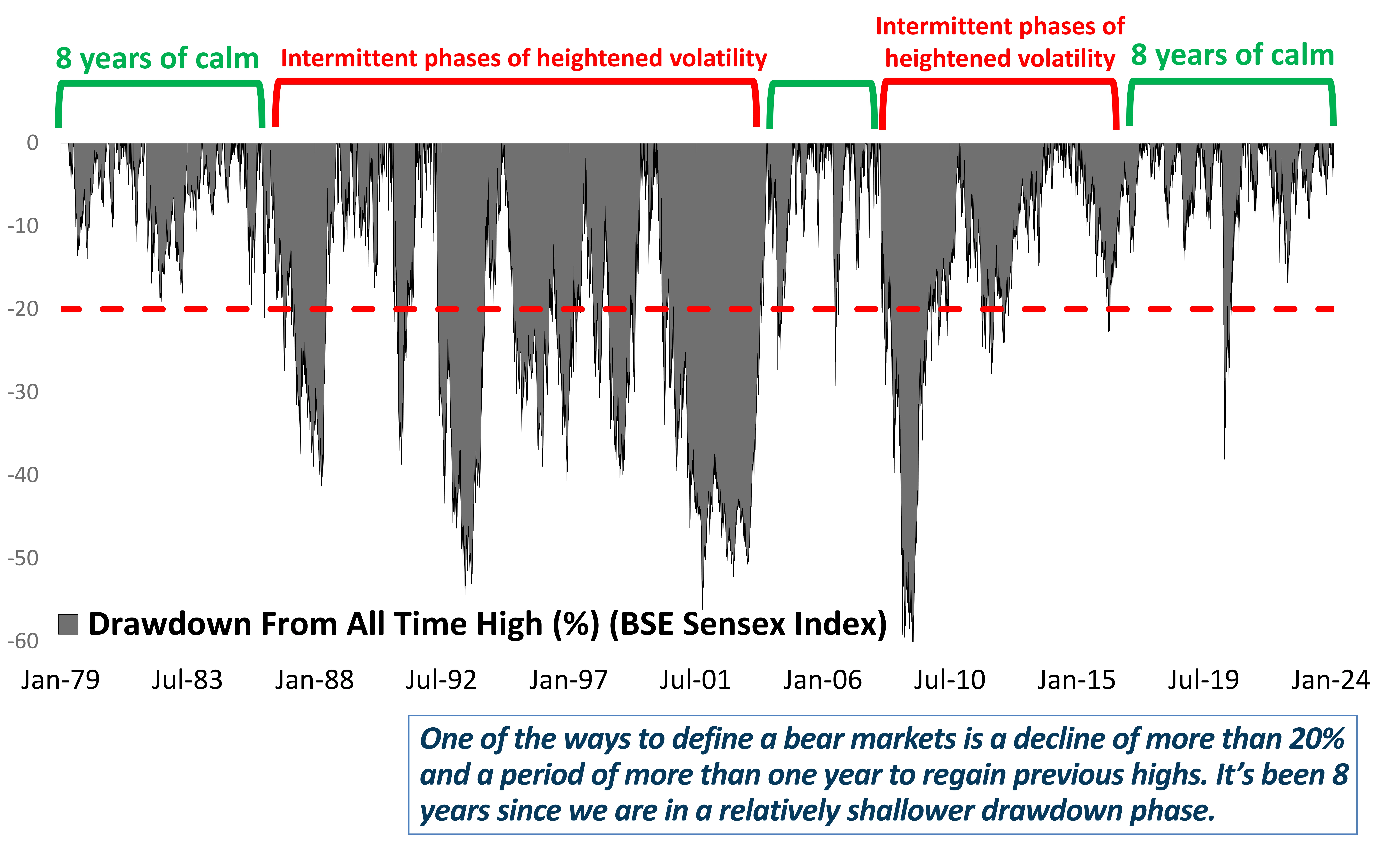 BSE Sensex Index has now gone for almost 8 years without a bear market.