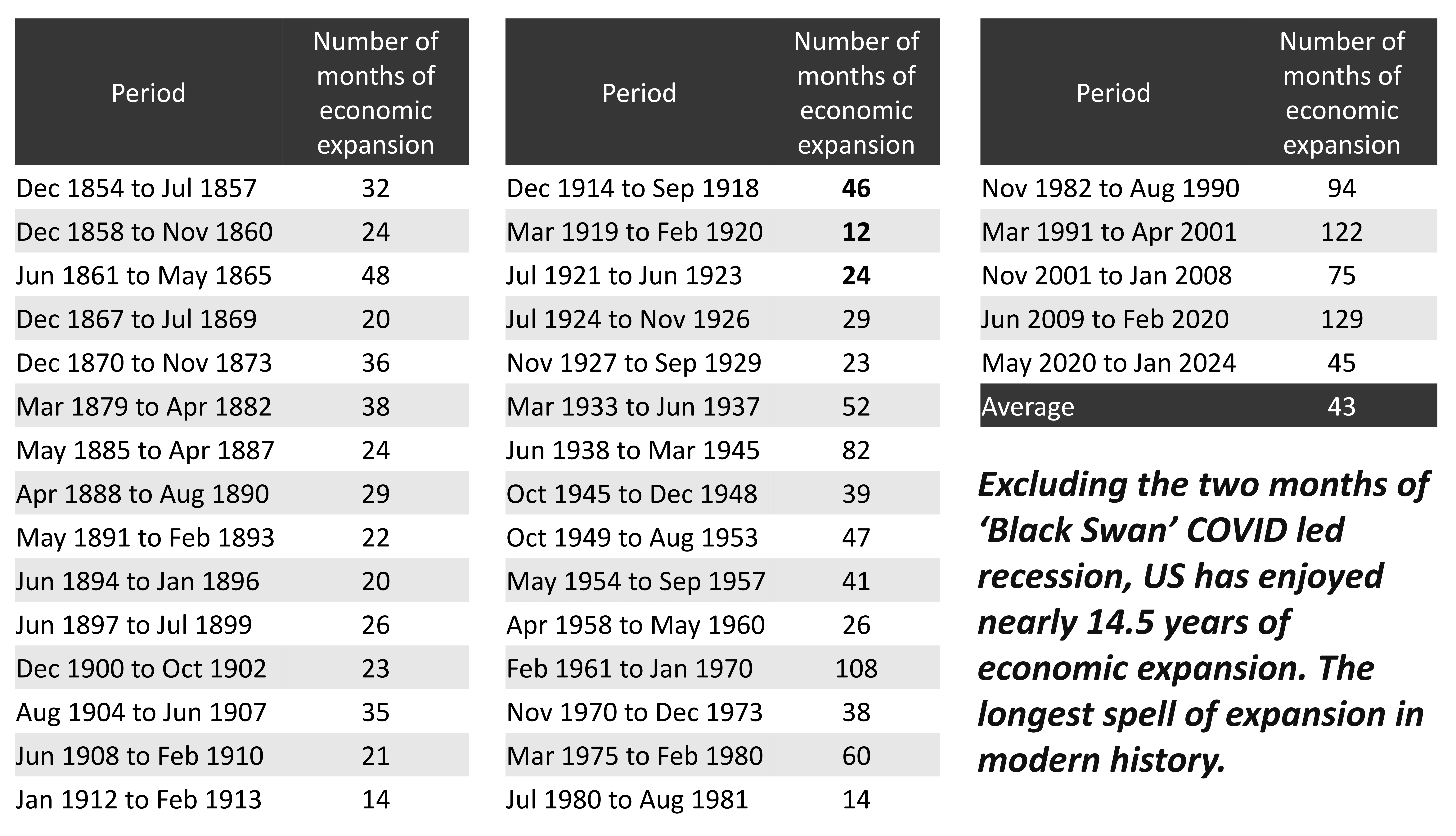 Source: FRED, NBER, DSP; Data as on Jan 2024