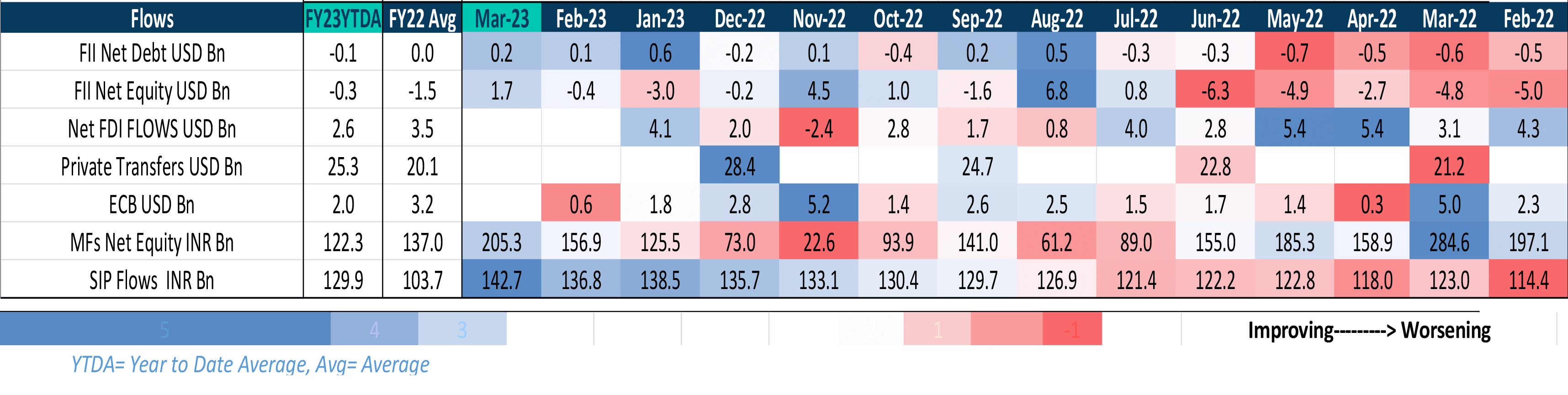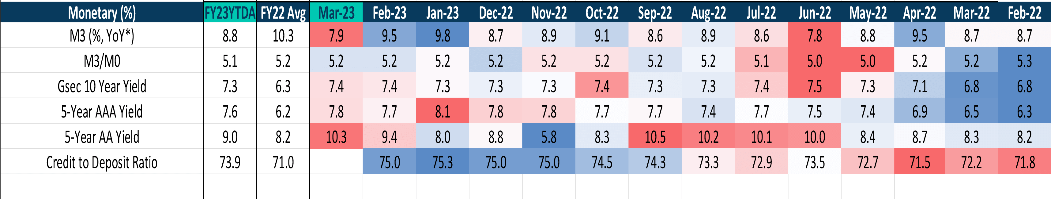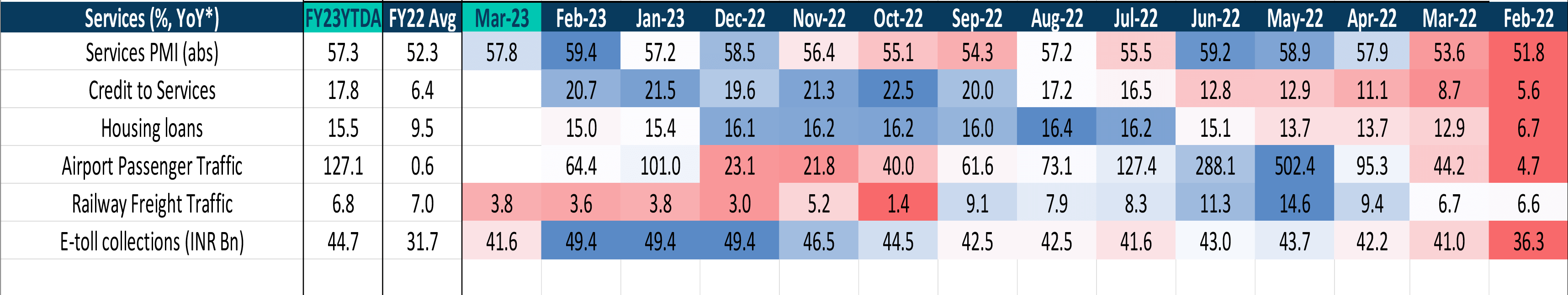 Inflation eased in Mar-23, aided partly by base and partly by slower momentum. Cereals’ prices contracted sequentially. Services inflation, however, remains reasonably sticky
