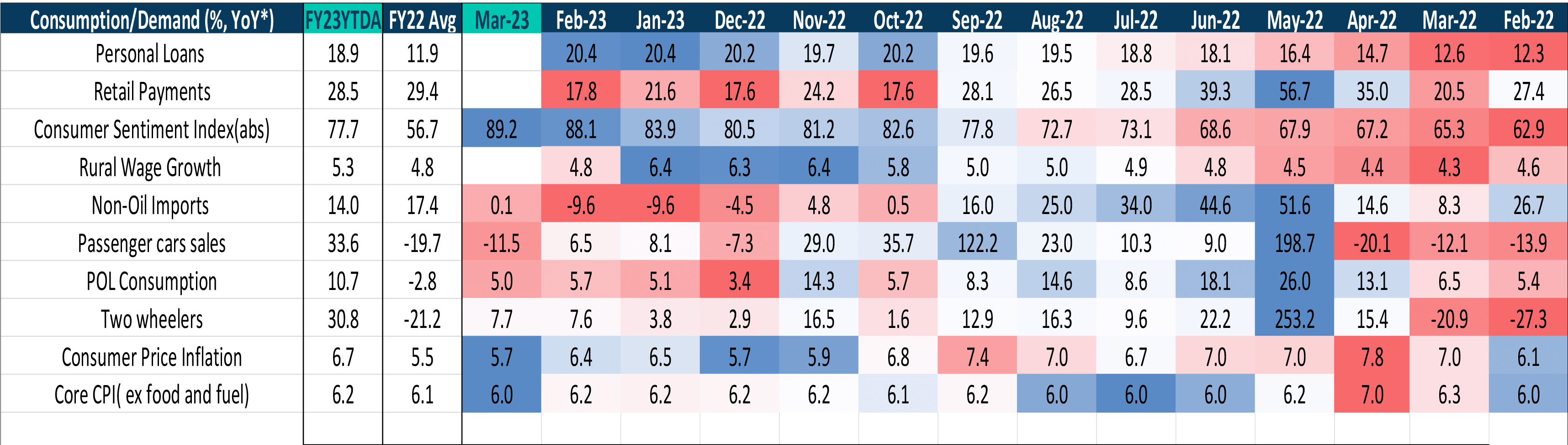 Consumer sentiments continue to be strong. POL consumption is now back to its pre-covid levels and auto demand is healthy. Overall, the slowdown, if any, is yet to be visible in hard data